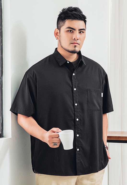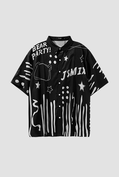 大尺碼冰絲趣味塗鴉襯衫 - 黑色