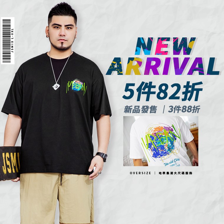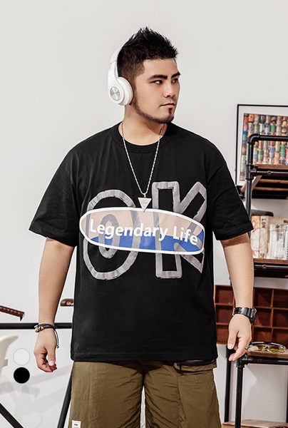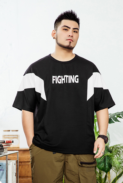 大尺碼發泡印花短袖T恤(共2色) - 黑色